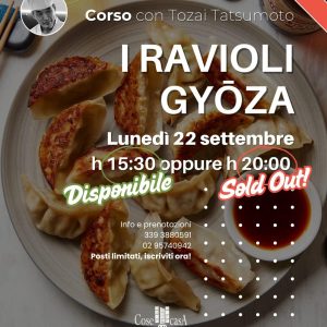 Dopo il corso dedicato al Sushi, ecco delle nuove date sulla cucina giapponese: questa volta impareremo a cucinare i tradizionali ravioli gyoza (dalla sfoglia fatta a mano al ripieno, fino alla tipica cottura mista).con Tozai Tatsumoto (Chef)