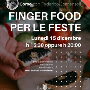 Torna Federico Comensoli con un corso interamente dedicato al finger food natalizio: tante idee sfiziose, eleganti e facili da preparare per accogliere i tuoi ospiti con stile.