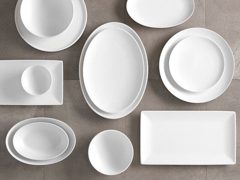 Piatti e Bowl in porcellana con uno smalto strutturato unico, utilizzabili nel microonde, forno e lavastoviglie