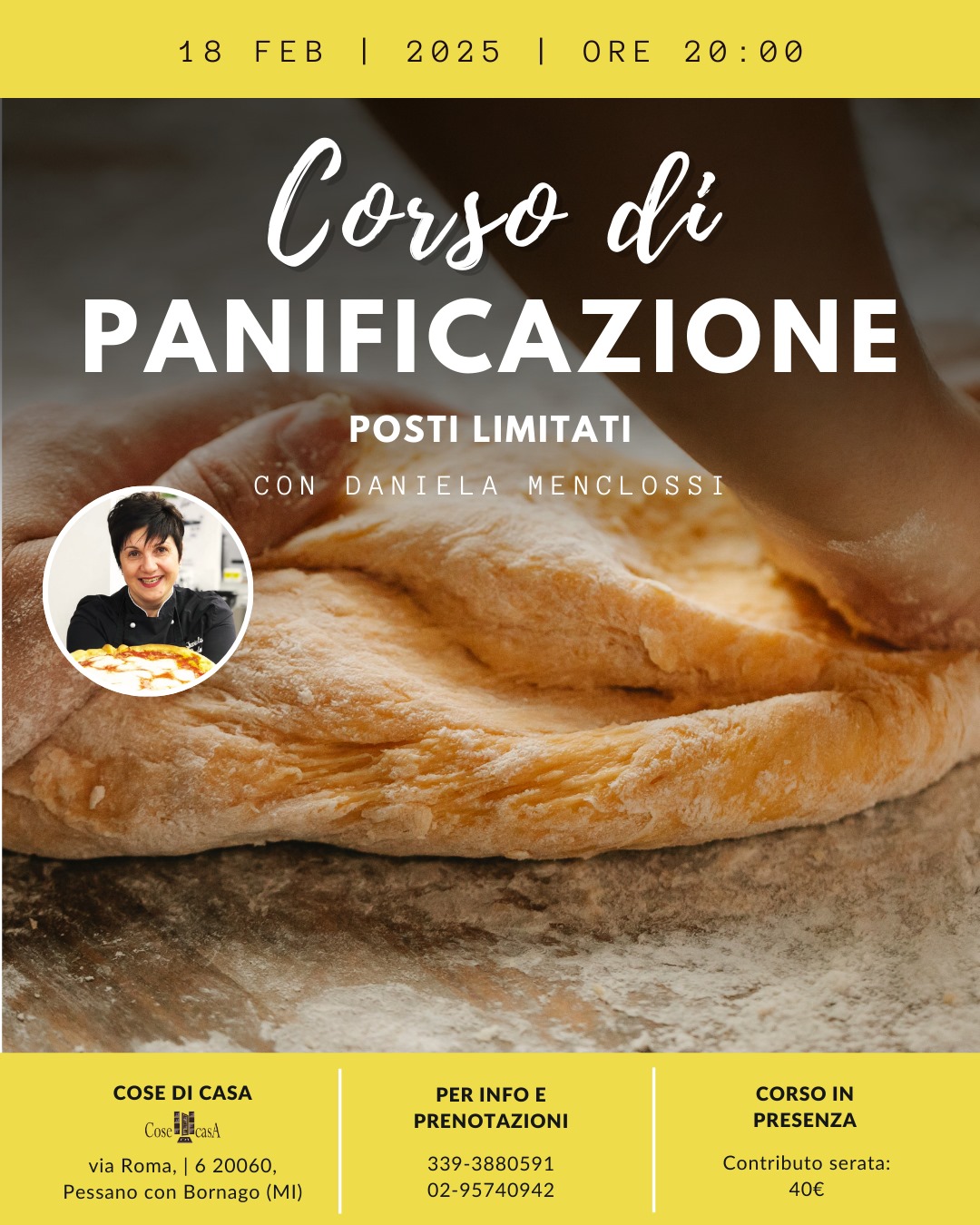 presso Cose di Casa via Roma 6, 20042 Pessano con Bornago (MI)POSTI LIMITATI - Costo del corso €40,00