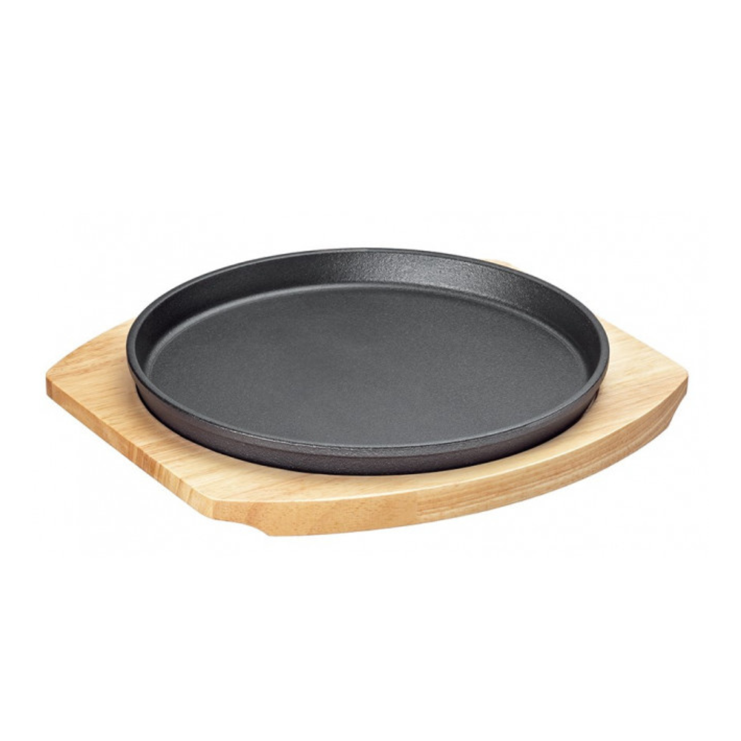 Griglia/padella BBQ con tagliere in legno ideale per preparare piccoli piatti e contorni. Le padelle in ghisa termosaldata mantengono il cibo caldo a lungo anche sulla tavola. Sono realizzati in modo solido e rappresentano un’alternativa ecologica ai vassoi in alluminio usa e getta. Questa bistecchiera può essere utilizzata anche sul fornello di casa e infornata priva di supporto di legno. Bellissima da presentare a tavola.