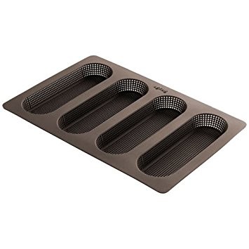 Ideale per preparare delle mini baguette per la colazione o la merenda . Lo stampo a quattro cavità in silicone platinico permette una cottura perfetta dell’impasto, una consistenza croccante e un colore dorato del pane tradizionale grazie alla microperforazione. Completamente antiaderente.