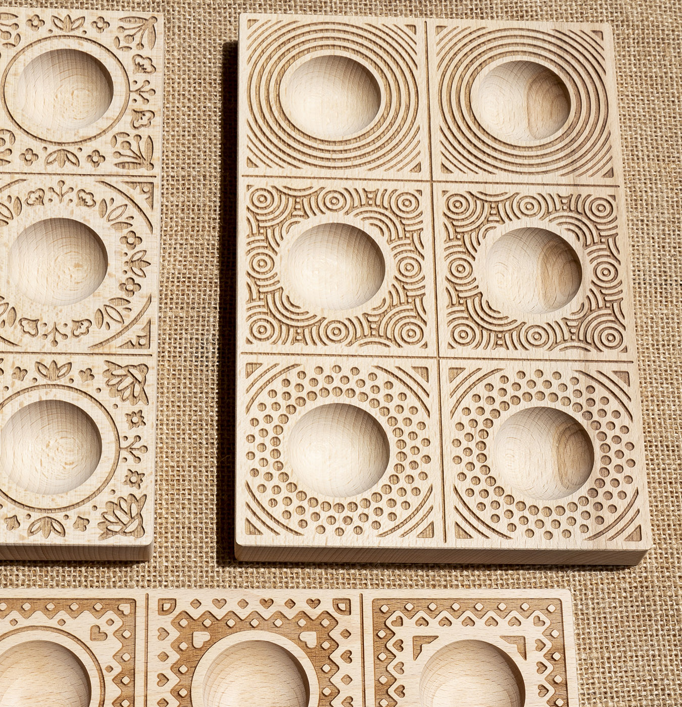 Stampo in legno da 6 posti per decorare i ravioli.