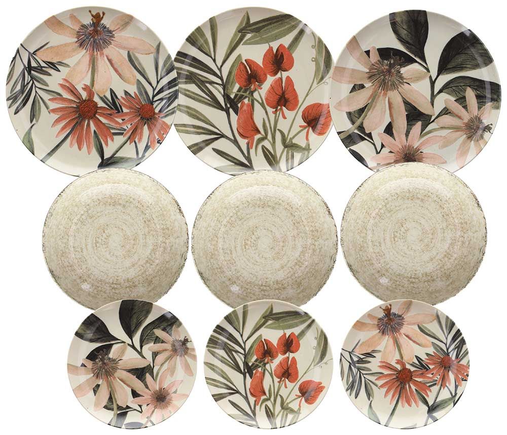 Il servizio piatti da 18 pezzi Coventry fa parte di una linea di accessori tavola a marchio Andrea Fontebasso. Fiori grandi e foglie verdi su toni tenui del beige sono i protagonisti di questi piatti ispirati al mondo brittanico. Indicato per le occasioni speciali. questo servizio piatti composto da 6 piatti piani, 6 piatti fondi e 6 piatti dessert, può essere acquistato con gli altri accessori dell’arredo tessile della stessa linea per un servizio tavola completo e coordinato. Lavabile in lavastoviglie ed idoneo per l’utilizzo in microonde.